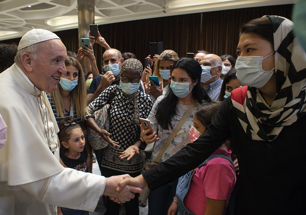 U večernjim satima 6. rujna papa Franjo u dvorani "Pavla VI." u Vatikanu susreo je oko 100 beskućnika i izbjeglica koji su bili pozvani na promociju filma „Francesco“.