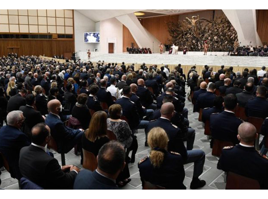 Tako je novi Ured Državne policije pri Vatikanu, pomažući i jamčeći sigurnost brojnih hodočasnika, u suradnji s vatikanskim tijelima zaduženima za javni red i papinu sigurnost, odnosno sa Žandarmerijom i Papinskom švicarskom gardom, obavljao važnu službu za Italiju i za Svetu Stolicu, istaknuo je papa Franjo. Audijencija je završila molitvom svetom Mihaelu arkanđelu, zaštitniku talijanske Državne policije, kojega je Papa zazvao zajedno s Djevicom Marijom kako bi bdjeli nad njima i njihovim obiteljima.