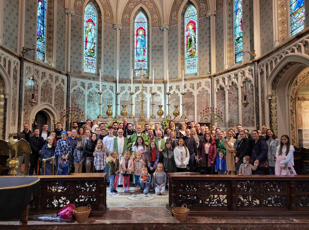 Župnik McCarthy na početku slavlja srdačno pozdravljajući više od stotinu hrvatskih vjernika koji su uspjeli doći na misu unatoč prometnih ograničenja uzrokovanih održavanjem dublinskoga maratona, izrazio je dobrodošlicu novom voditelju hrvatske zajednice te radost i spremnost na buduću suradnju.