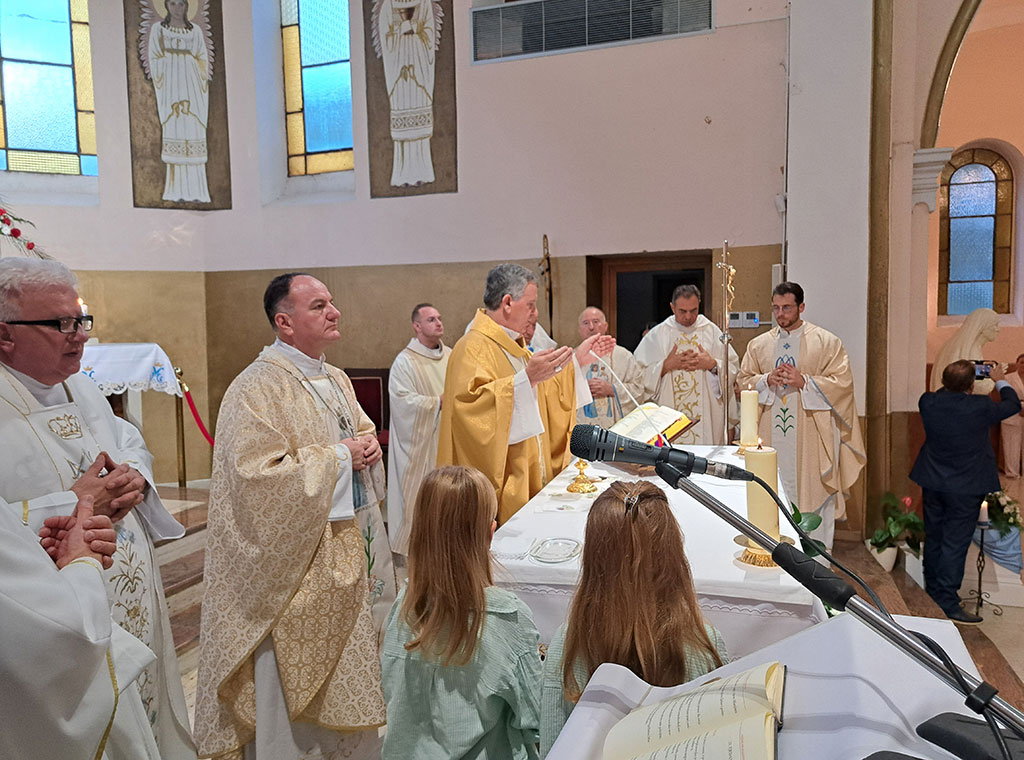 Nadbiskup Tomo Vukšić slavio je misu uz koncelebraciju biskupa Petra Palića, župnika i čuvara svetišta don Marijana Demaja, direktora Caritasa Kosova don Viktora Sopija te svećenika toga kraja.