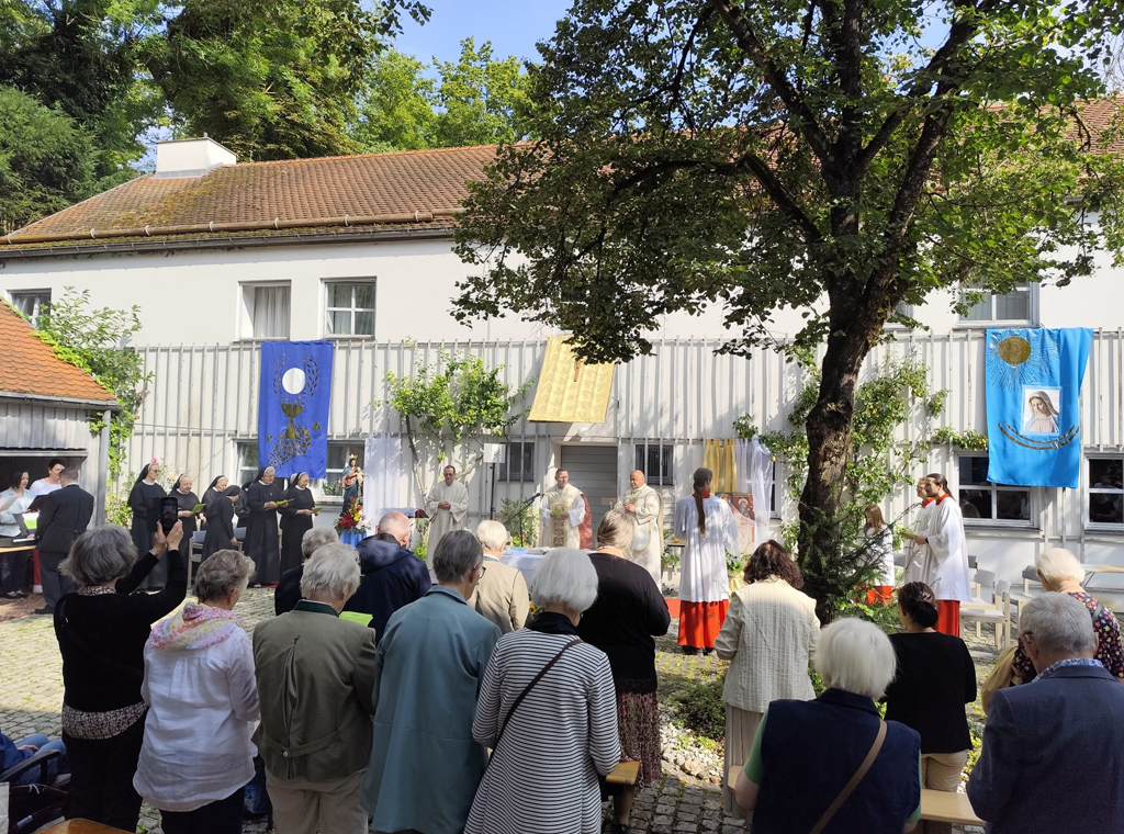 Misu je slavio župnik Michael Kiefer, uz koncelebraciju župnog vikara Piotra Waza i posluživanje trajnog đakona Michaela Götza. Toga dana zajednica sestara i župljani obilježili su također blagdan Gospe od Anđela – Porcijunkulu, povodom kojega je, kao i prethodnih godina, misa slavljena u dvorištu sestarske kuće.